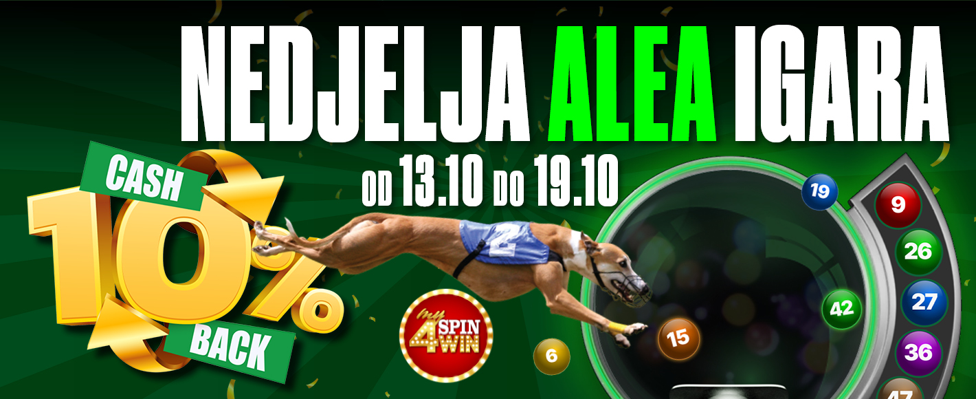 - Zaigraj svoje omiljene igre provajdera Alea – My Lucky 6, Greyhound Races, Bergman Roulette, Spin4Win i Virtual Soccer – i ostvari pravo na cashback u iznosu od 10% svakog dana!